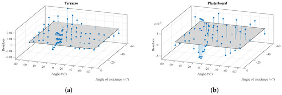 3D diagram with errors between the values adjusted using the reflection model and the experimental measurements. (a) Terrazzo; (b) plasterboard.
