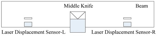 After the weighing system and the counterweight selection system are lifted synchronously, the beam including the middle knife and side knives is dropped. The middle knife-edge and corresponding bearing block form the pivot to support everything. Four force sensors are mounted at two sides of the beam. The installation positions are shown in Figure 8. When the beam is dropping, the vertical forces of four points on the beam are measured to judge the loading synchronization and adjust the position of the beam.