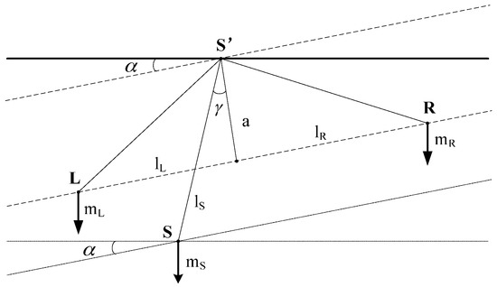 The lever arm of the balance's center of gravity with a length forms an angle γ with a. These torques around point S’ are neutralized under the equilibrium condition [12]. With the gravitational accelerations , and in the three gravitational centers of the masses, the following expression is valid: