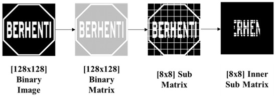 From the 8-by-8 binary matrix, a region of interest (ROI) is extracted for pictogram feature analysis which is also shown in Figure 6.