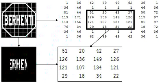 Now, this original matrix A is divided into a submatrix which is S = 4-by-4 matrix by Equation (3) where 1≤ m ≥4 and 1≤ n ≥ 4 and is shown in Figure 3. This 4-by-4 sub matrix pixel value needs to be stored in the system database for further processing.