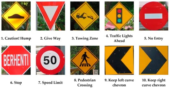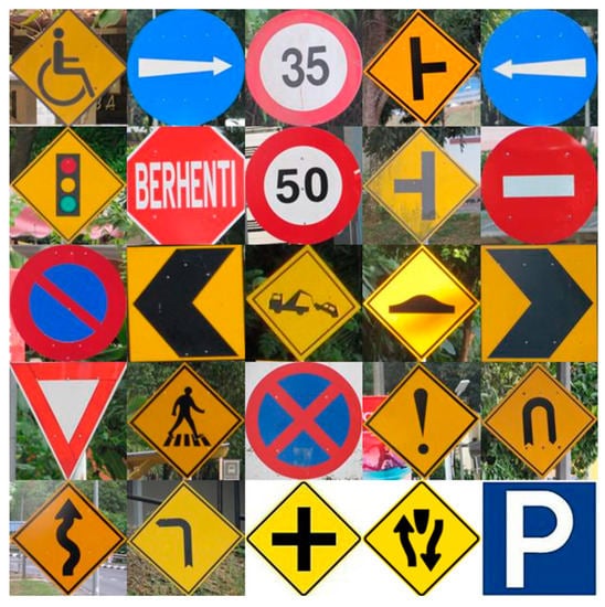 - Manual On Traffic Control Devices Traffic Sign Applications. Available online: http://www.jkrbentong.gov.my/images/e-Perpustakaan/01_Rujukan_Teknikal/03_Teknikal_Jalan/ATJ/02_Traffic_Control/2B-85_Traffic_Signs_Applications.pdf. (accessed on 20 March 2017).