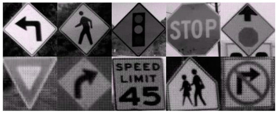 - Houben, S.; Stallkamp, J.; Salmen, J.; Schlipsing, M.; Igel, C. Detection of traffic signs in real-world images: The german traffic sign detection benchmark. In Proceedings of the 2013 International Joint Conference on Neural Networks (IJCNN), Dallas, TX, USA, 4–9 August 2013; pp. 1–8. [Google Scholar]