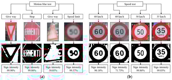Robustness testing. (a) Motion blur test, and (b) Speed test.