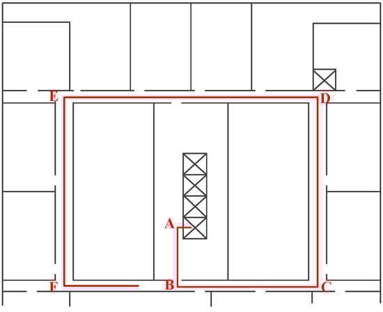 To evaluate RCILS, we performed experiments in an office building, with a floor plan, as shown in Figure 10. We used two different types of Android smartphones, namely Nexus S and Nexus 5, to collect the trajectory data. During the experiment, participants held two smartphones on their two hands in front of themselves and walked normally in the accessible areas of the building. Holding the two smartphones on their two hands causes the WiFi RSSs to be received at the same time. To simulate the crowdsourcing users, participants started at different positions. To evaluate the performance with incremental data, each trace is repeated ten times. In total, 200 user trajectories were collected by three participants using two types of smartphones. In terms of time, these trajectories correspond to 220 min of data collection. The collected data includes acceleration data, compass data, gyroscope data, barometer data, and WiFi.