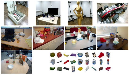 - Lai, K.; Bo, L.; Ren, X.; Fox, D. A large-scale hierarchical multi-view rgb-d object dataset. In Proceedings of the 2011 IEEE International Conference on Robotics and Automation (ICRA), Shanghai, China, 9–13 May 2011; pp. 1817–1824. [Google Scholar]