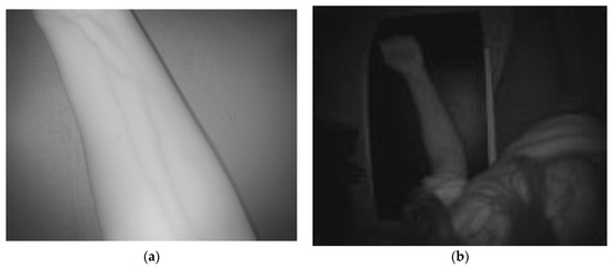 Multispectral imaging systems and NIR spectroscopy have also been considered by several authors. Subcutaneous vein detection using multispectral imaging is proposed in [22]. In this case, visible and NIR images acquired by a multispectral imager are used in a normalized subtraction algorithm for improving contrast, and consequently the vein detection performance. In [23], near-infrared spectroscopy is proposed for an education-focused mobile medical application devised to help to improve the decision-making skills of healthcare students in venipuncture. There are also three commercial devices approved by the FDA that use NIR spectroscopy to facilitate peripheral intravenous catheter insertion: the VeinViewer [24] (Christie Medical Holdings, Memphis, TN, USA), the AccuVein [25] (AccuVein LLC, Cold Spring Harbor, New York, NY, USA) and the VascuLuminator [26] (De Koningh Medical Systems, Arnhem, The Netherlands). All these solutions are conceived to improve visualization of subcutaneous veins instead of detecting them automatically.
