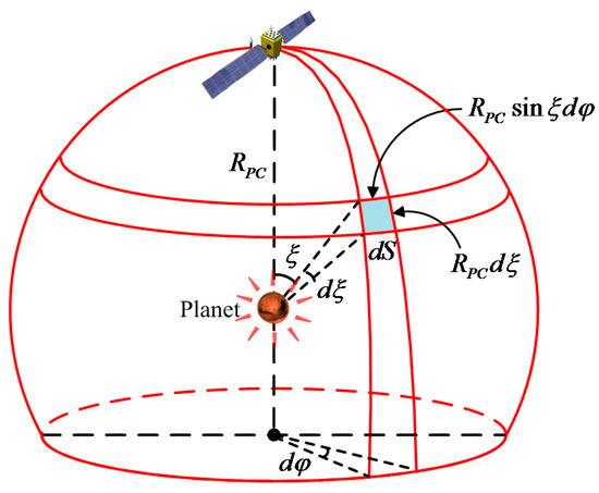 We consider that navigation sensor observes the planet at a distance of . Only a part of the illuminated area of the celestial body can be observed in most cases. If the surface of a planet is assumed to be homogeneous, then the distribution of the reflected radiant energy only depends on two factors, distance and phase angle which is the angle at the celestial body object between the Sun and the observer. Phase function is the ratio of the reflected radiant flux at phase angle to the radiant flux at zero phase angle, which is denoted as . When , . Thus, the irradiance received by the navigation sensor is expressed in the following form: