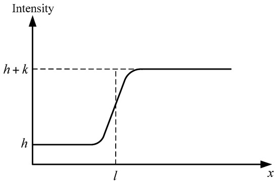 The edge of a celestial body can ideally be modeled as a step function on 1D section. Given the effects of the point spread function (PSF) of the optic system, the real edge adjusts to the blurring effect and is called the blurred edge model. The parameter Gaussian PSF radius indicates the extent of the blurring effect. The celestial body image is assumed to be an ideal disk, such that the radial energy distribution along the direction normal to the edge is isotropic. Therefore, the 2D imaging model can be regarded as having been formed by 1D edge model that rotates 360° around the center of the disk. A 1D celestial body edge model is established, and the subsequent analyses are based on the said model to simplify the theoretical analysis and calculation. The blurred edge (Figure 4) can be modeled by convolving the ideal step edge with the PSF, which is expressed as [24]: