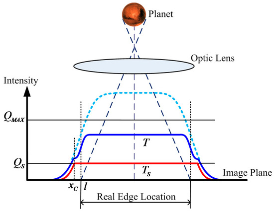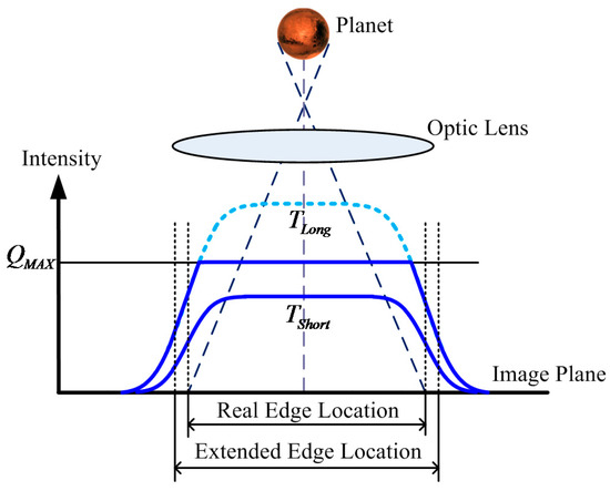 where is the unit step function. As shown in Equation (12), the exposure parameters and explicitly show the effects of output photoelectrons. Therefore, celestial body edge model and star spot imaging model are first established in this study. Then, the influence of exposure parameters on the accuracy of the extraction of optical navigation measurements is analyzed.