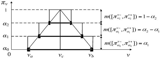 Figure 4 gives an example that when p = 3, and m can be constructed by uniformly cutting α three times. Distinctly, m corresponds to a possibility distribution π that approximates πv. Certainly, a better approximation of the continuous possibility distribution can be obtained by increasing the number p of cut sets, at the expense of higher computational complexity.