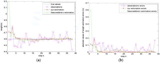 (a) Estimation results of level L, (b) Absolute values of length estimation errors.