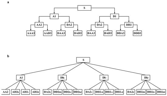(a) Procedure of 1D wavelet packet transform (WPT); (b) procedure of 2D WPT.