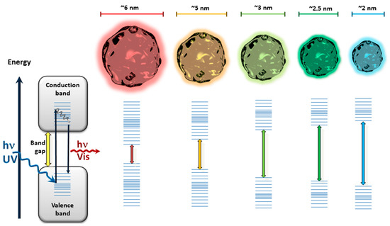 - Weller, H. Colloidal Semiconductor Q-Particles: Chemistry in the Transition Region between Solid State and Molecules. Angew. Chem. Int. Ed. Engl. 1993, 32, 41–53. [Google Scholar] [CrossRef]
