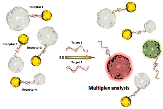 - Geißler, D.; Charbonnière, L.J.; Ziessel, R.F.; Butlin, N.G.; Löhmannsröben, H.-G.; Hildebrandt, N. Quantum Dot Biosensors for Ultrasensitive Multiplexed Diagnostics. Angew. Chem. Int. Ed. Engl. 2010, 49, 1396–1401. [Google Scholar] [CrossRef] [PubMed]
