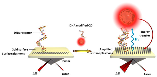 - Malic, L.; Sandros, M.G.; Tabrizian, M. Designed Biointerface Using Near-Infrared Quantum Dots for Ultrasensitive Surface Plasmon Resonance Imaging Biosensors. Anal. Chem. 2011, 83, 5222–5229. [Google Scholar] [CrossRef] [PubMed]