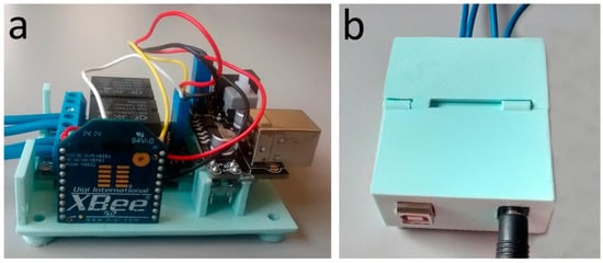 The overall configuration system provides for the use of two S2 XBee modules (Table 1), that support the ZigBee protocol [], based on 802.15.4 standard []. The XBee module, set as the API coordinator, is connected to the Arduino UNO r3 of the nearable monitoring unit through a specific shield []. The XBee module, set as End Device AT, is the core of the actuation unit.