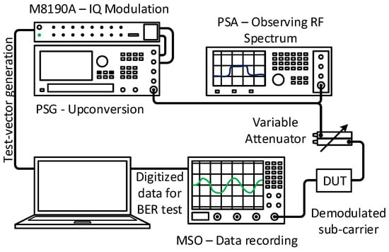 Test setup used for measuring performance of FM-UWB receiver with different sub-carrier modulations.