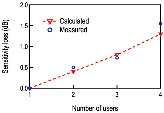 Calculation and measurement of sensitivity degradation due to the presence of multiple users.