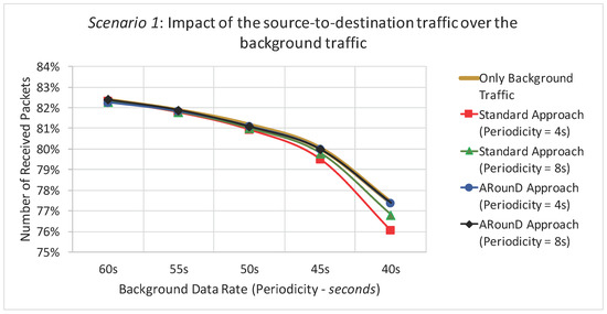 Figure 29. Impact of the source-to-destination traffic over the background traffic (Scenario 1).