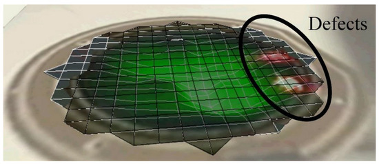 Observation of the defects on the fabricated printed membrane with a membrane radius of 4 mm and a membrane thickness of 8 µm using pre-tension Mylar thin film using LDV in scanning mode.
