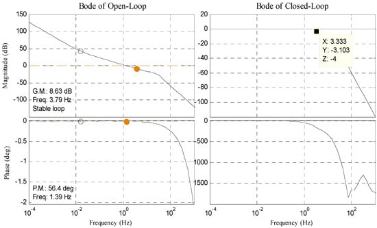 The controlled object G(s) can be written as Equation (3), where Ce is the back electromotive force of DC motor, Tm is the electromechanical time, and Te is the electromagnetic time. In this paper, we separately design double closed-loop PI controller in no-delay situation and delay situation. Bode diagram of open position-loop and closed position-loop in each situation is shown in Figure 3 and Figure 4. The result of tracking 10° 0.2 Hz signal in delay situation is shown in Figure 5.