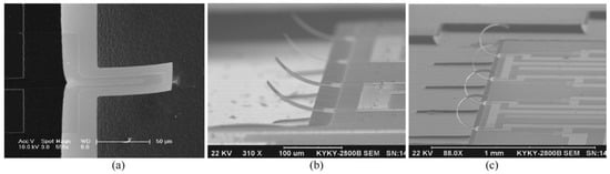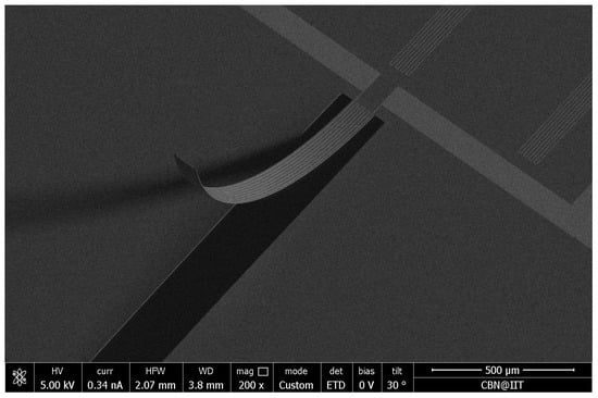 Side view scanning electron microscope image. MEMS-based air flow sensor with a free-standing microcantilever structure. Reproduced from Wang et al. [7].
