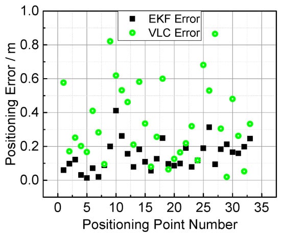 The final positioning results from the fusion positioning method and VLC is shown in Figure 9.