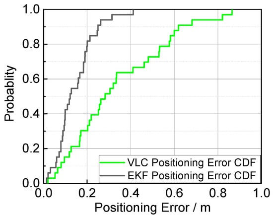 Error cumulative distribution functions of fusion positioning and VLC positioning methods.