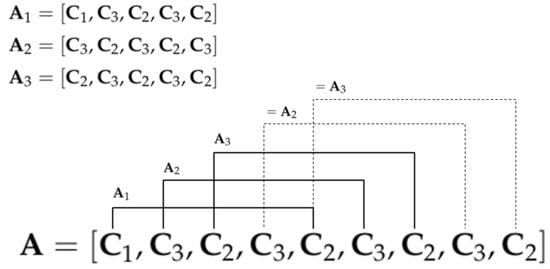 The activity feature generation step is the core of the system, and it is the same for the training and the classification phases. Its aim is to generate suitable features able to encode an activity. The input of this module, which is the output of the previous one (see Section 2.1.2), is a temporally ordered stream of the centroids representing the most important postures of the original skeleton sequence. The cardinality of this set is equal to the number of frames constituting the original action data. These features need to be reduced to increase the generality of the representation and also to lower its complexity. In addition, since different people perform the activities at different speeds, another important aspect to consider is the speed invariance of the new features. For this reason, the activity feature generation module considers only the transitions between key poses (i.e., transitions between centroids). Hence, the temporal sequence is now simplified to include only the transitions between clusters. This means that all the equal centroids that are consecutive in temporal order are discarded. This new compressed sequence provides a more compact representation of the activity and is also speed invariant. In other words, an action sequence is now encoded in a temporally ordered sequence of centroid transitions. Starting from this type of data, the idea is to exploit all the information contained in this sequence to represent a specific action in a way that is as general as possible using only a few basic postures. Let’s consider a person who is drinking a glass of water. We want our system to classify this action when the person is drinking in several gulps but also when the person begins to move his or her hand close to the mouth. Therefore, we generate n-tuple from the current sequence by means of a sliding window, creating a set of new instances to represent the specific activity. Consequently, the new instances are composed of a set of features with a size of , where L is the length of the sliding window and N is the number of selected skeleton joints. Let’s take a simple example to clarify this concept. If an activity has three clusters, a possible compressed sequence can be