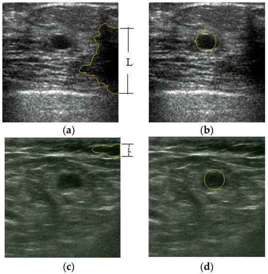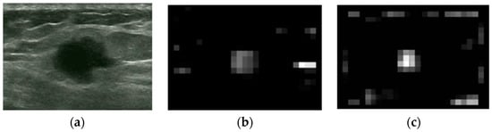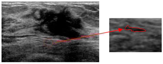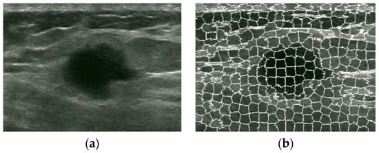 In recent years, to improve the usability of US computer-aided diagnosis (CAD) has been preferred to achieve more reliable and accurate diagnostic conclusions and to reduce the unnecessary MRI and biopsies. In addition, CAD techniques used to investigate suspicious lesions in US breast images can also help reduce the workload of doctors [3,4,5,6]. Generally, a CAD system mainly contains three steps: image segmentation, feature extraction and object classification. Image segmentation is an essential step. In recent decades, many segmentation techniques have been proposed [7], such as neural network (NN)-based methods [8,9], deep learning, active contour models [6], and region-based methods [10,11]. For these segmentation algorithms, due to the interference caused by shadowing artifacts or similar tumor-like structures for the lesion, the automatic localization of tumors in US breast images is a difficult and critical link [8,9,10,11]. In fact, generally, lesions are manually marked as an alternative method, but artificial intervention makes it impossible to realize fully automatic segmentation.