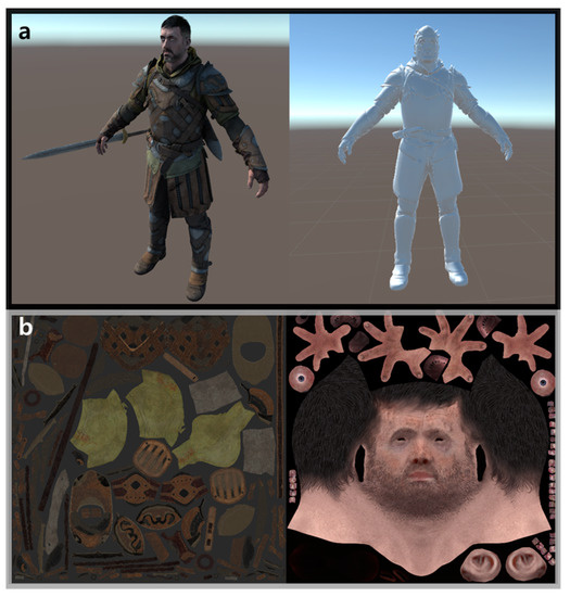 (a) A model with a high number of polygons used in the experiment and (b) textures of the model.