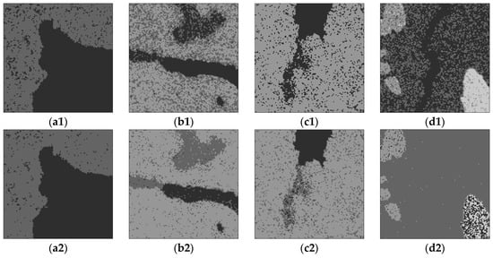As shown in Figure 9(a5–d5), the segmentation results from the proposed algorithm are all the optimal segmentation results under a real number of clusters. One can see that the sea ice images during different periods are evidently distinguished all the time by the proposed algorithm, and there are almost no mis-segmentations in the homogeneous regions.