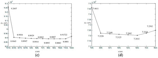 Global energy value L and the number of clusters m at each iteration. (a) Original SAR image 1 with d = 30, η = 0.5; (b) Original SAR image 2 with d = 30, η = 0.4; (c) Original SAR image 3 with d = 20, η = 0.7; (d) Original SAR image 4 with d = 30, η = 0.5.