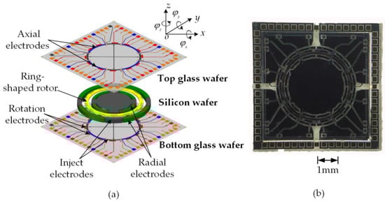 - Han, F.; Liu, Y.; Wang, L.; Ma, G. Micromachined electrostatically suspended gyroscope with a spinning ring-shaped rotor. J. Micromech. Microeng. 2012, 22, 105032. [Google Scholar] [CrossRef]