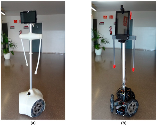 Images of the two mobile robot prototypes analyzed; (a) APR-1, (b) APR-2.