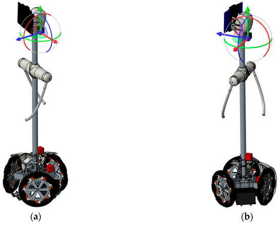 The common point of the omnidirectional wheels (Figure 1) are the vibrations generated due to the inner trace wheel discontinuities. In the case of the tower-typed mobile robots, these vibrations can cause visible oscillations at the top of the mobile robot. For example, the proposal of [16] analyzes this problem in the case of two-wheeled mobile robots, testing a vibration minimization technique based on using different acceleration and deceleration velocity profiles along with the effects of using soft and hard wheels instead of using a dedicated suspension system. The occurrence of vibrations is frequently used for reconnaissance of the terrain [17,18,19,20], or even power generation [21], but is often a problem for the safety of the components and for their correct operation and comfort [22,23,24,25,26]. The vibrations appearing at the head of the mobile robot cause mechanical stress, cracks [27], and also an undesired visual effect during the displacements.