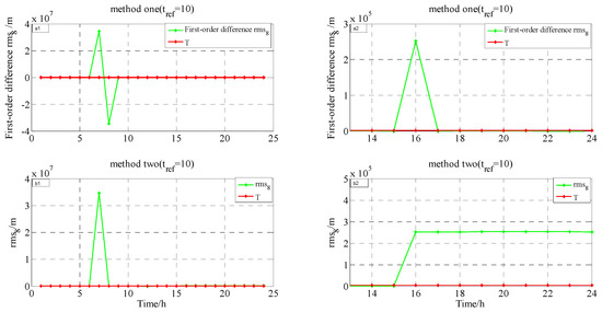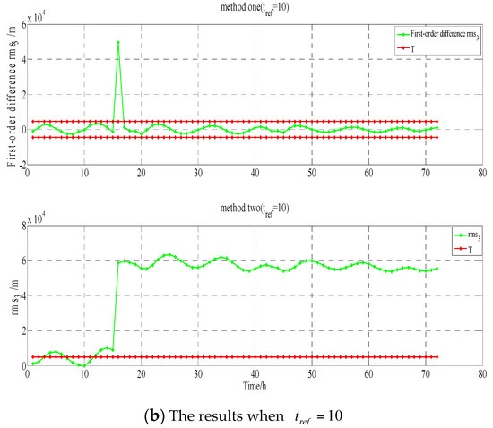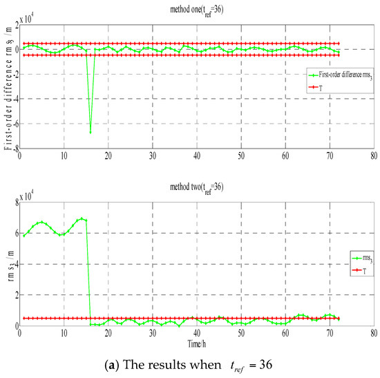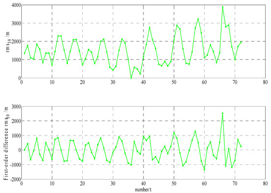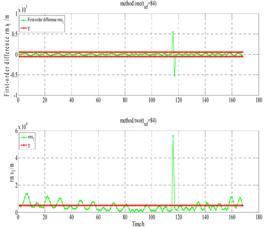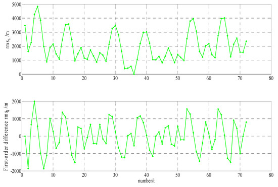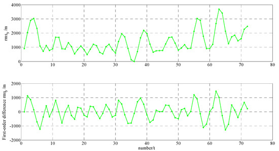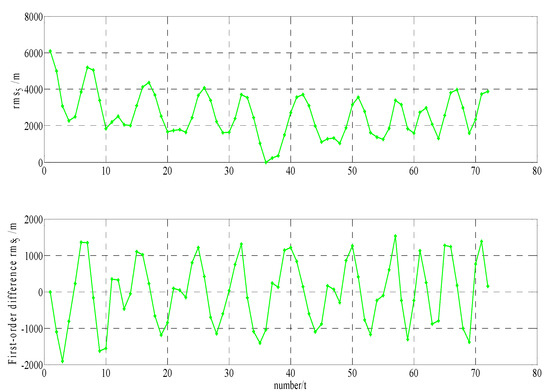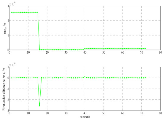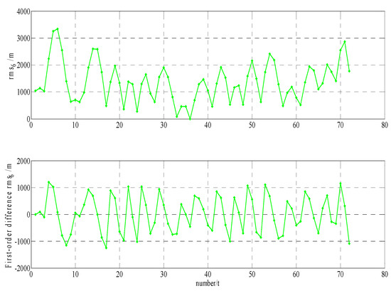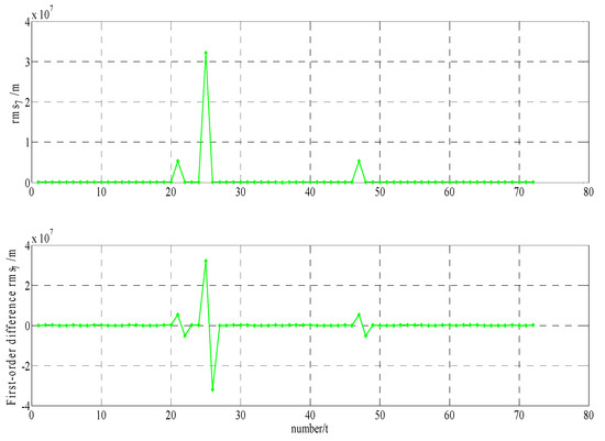 It can be seen from the above figures that the change in over time shows a periodicity and trend characteristics obviously. Figure 1 and Figure 5 showed that the orbital anomaly only affects at the current epoch, but the orbital maneuver has an influence on at the current epoch and the subsequent epoch, respectively. After the first-order difference, the effects of periodicity and trend can be removed, and when there is no orbital anomaly and maneuver, will be displayed as the ergodic Gaussian random process.