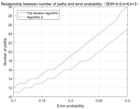 In practice, it can be impossible to find the analytical solution of formula (3). So we need to find the numeric solution by the iteration algorithm. However, when h gets larger, it can be of great computational complexity to perform the iteration algorithm to get H. Consequently, it is necessary to adopt another algorithm with light complexity to get the approximated solution of (3), which is also presented in [15,16]. Let denote the number of the successful paths in the H paths, then satisfies the Binomial distribution B(H,), and the mean value and the variance of can be written as
