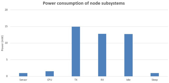 Power consumption of different components in wireless sensor nodes.