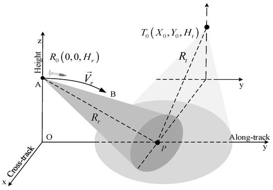 Supposing that the transmitted signal is the linear frequency modulation (LFM) signal [9], and the position of the point target is , then we have the instantaneous slant range of the high-speed maneuvering MBFL-SAR , which can be described by:
