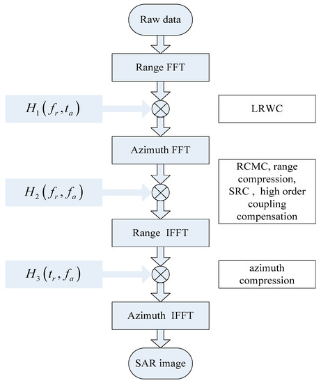To summarize the operations above, the block scheme of the proposed BFL-SAR imaging algorithm is shown in Figure 2.