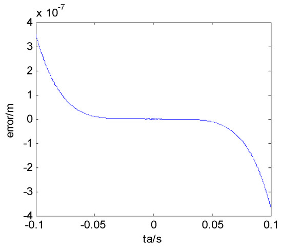 The maximum range approximation error is m in Figure 6, which contributes to the phase error in Equation (5) as: