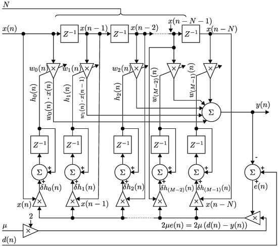 In this section, we present a detailed mathematical description of the two main approaches used in our adaptive filters (see Figure 1): the stochastic gradient adaptation method, particularly the Least Mean Squares (LMS) algorithm (see [91,92,93]) and the optimal recursive adaptation method, particularly the Recursive Least Squares (RLS) algorithm [94,95,96].