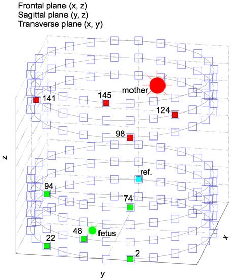 - The signal propagation model of the and signals, as well as the fetal and maternal heart positions were created based on information reported before [59,60,61,88].