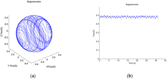 The magnetic field measured by a well calibrated MIMU. (a) The measured 3D magnetic field; (b) the magnitude of the magnetic field.