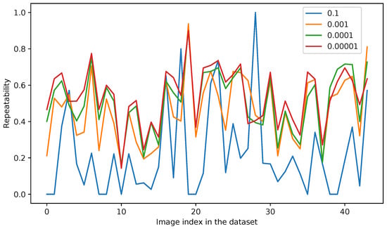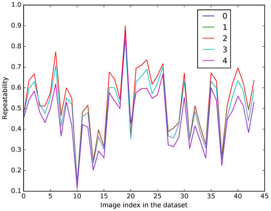 Detector parameters tuning: repeatability for several “quality levels” according to each image pair in the dataset.