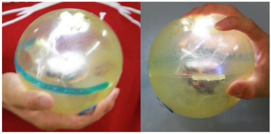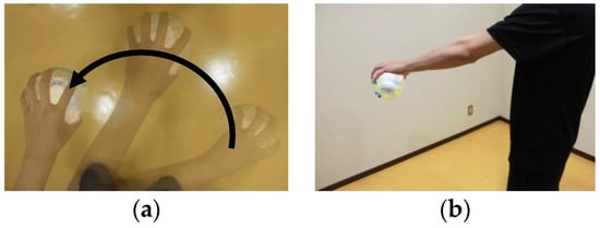 In the proposed method, we develop a supporting interface for beginners that generates prompts for bodily motion during creative dance performance as displayed in Figure 1. This interface has three features: it is ball-shaped, wireless, and hand-held. Because of these features, the interface can be held in the user’s hand during a dance performance, allowing them free motion and detecting the grasping motion. The interface controls sound parameters such as the note, volume, and tempo according to variations in the grasping force and bodily motion. The sound is then presented back to the user in real-time. Because of this feedback, users can understand the association between sound and their bodily and grasping motions. Utilizing the imagination to generate sound sequences, users can be prompted for successive dance motions. In this manner, the sounds can continuously support the user’s successive creative performance. In the experiments to verify the effectiveness of the interface, we focus on the performance of beginner-level dancers during creative dance with the interface. Their creative dance performance is evaluated based on Laban Movement Analysis (LMA) [10,11] and the amount of variation in the grasping force. The accuracy of the realization of imagined motion is evaluated in additional experiments.