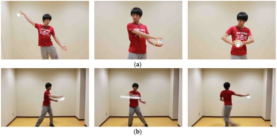 Scenes of musical performances using TwinkleBall: (a) Grasping motions; (b) Moving motions.