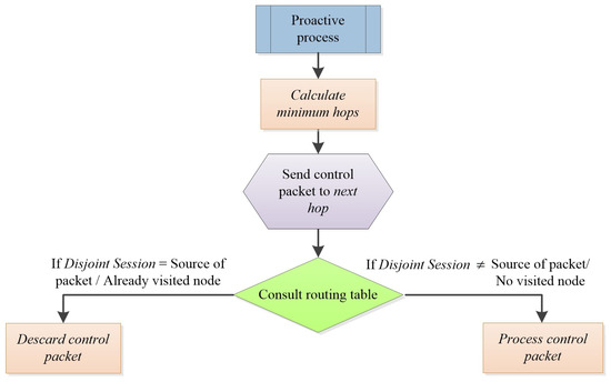 The forwarding mode of the RFA at the intermediate nodes may be unicast or broadcast, depending on if the current node has available routing information from the destination d. In general, the RFA is sent in broadcast mode, because it aims to discover the first route. Unicast mode is utilized whenever the current node has information of a neighboring router that serves to relay the correspondent RFA to the next hop. In other words, a node has routing information whenever the route setup is done, utilizing the first setup in broadcast mode for the sending of RFAs and in the subsequent ones (because of link failures at source nodes), this mode or unicast, due to the remaining routes belonging to other previous setups.